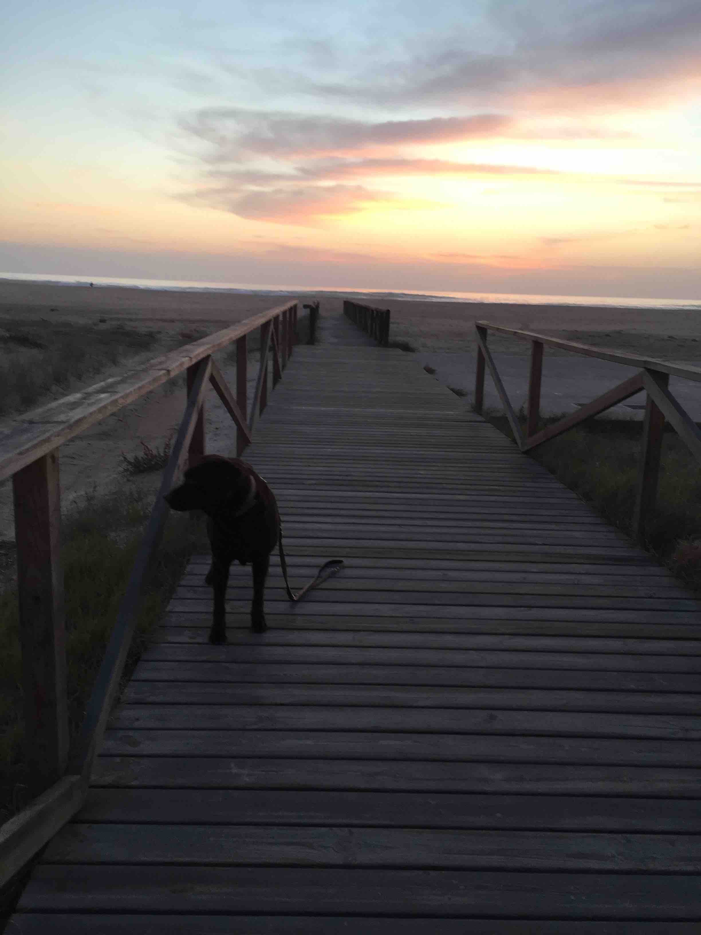 Auch gibt es rund um diesen Bereich viele ökologisch nachhaltige Pfade. Einen Fluß habe ich auch entdeckt, die Tour wollte ich auch gerne machen. Aber Leute, die ich hier am Strand mit ihrer Hündin Mora kennengelernt habe (Foto weiter unten), haben mir davon abgeraten. Denn sie sagen, solche Sumpfgebiete solle ich mit dem Hund doch besser meiden wegen der Mücken und der möglichen Krankheiten, wie Herzwürmer, die es im Süden Europas nun mal leider gibt. Ben ist zwar geschützt und bekommt demnächst schon seine zweite Kur, aber wir wollen ja kein Risiko eingehen.